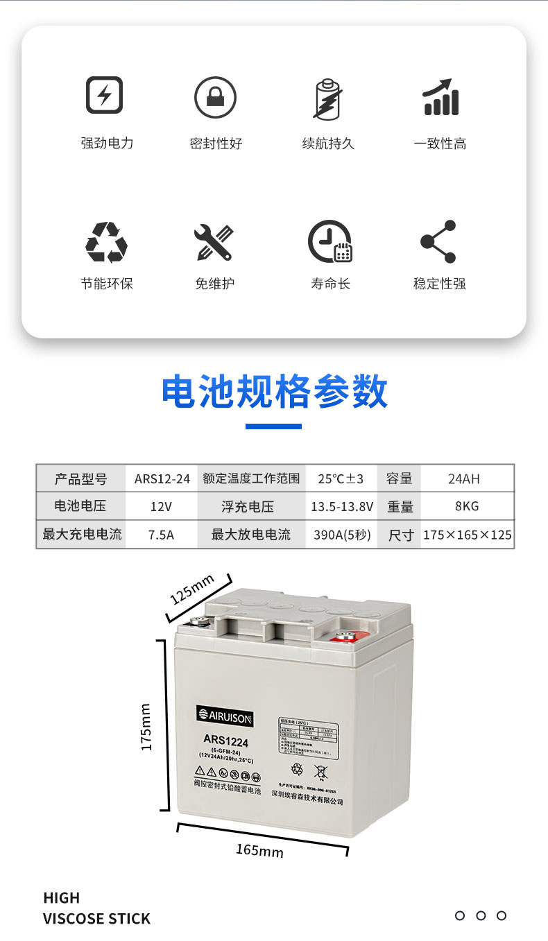 埃睿森AIRUISON蓄電池 ARS1224